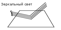 Зеркальный свет похож на рассеяный, но он рассеивается строго в одном направлении. Яркий свет создает яркий блик на поверхности. Этот свет можно заметить только если объект находится между вами и источником света или если свет падает на его край. Например: возьмите книгу и держите ее впереди себя towards лампой. Вы увидите на книге яркое отражение света.