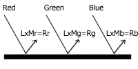 Это значит, что интенсивность красной части света от источника умножается на красную часть материала поверхности. То же делается с синим и зеленым цветами.