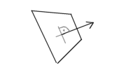 Из-за этого мы вынуждены использовать вот какую штуку. Определим вектор, исходящий из поверхности. Этот вектор называется "вектор нормали" или просто "нормаль". Нормаль направлена под углом 90° к плоскости поверхности. Следовательно, это есть то направление, куда смотрит поверхность плоскости.