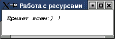 . . . . . . . prDisplay : PDisplay; prGC : TGC; nWnd : TWindow; psString : PChar; . . . . . . . . (* Устанавливаем связь с сервером, получаем номер экрана. . .*) . . . . . . . . (* Выбираем события, обрабатываемые программой *) XSelectInput (prDisplay, nWnd, ExposureMask OR KeyPressMask); (* Получаем рисуемую строку *) psString := XGetDefault (prDisplay, 'hello', 'helloWorld'); . . . . . . . . XDrawString ( prDisplay, nWnd, prGC, 10, 50, psString, strlen (psString) ); . . . . . . . .