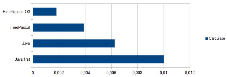 Java: 0.877 секунд FPC: 0.0664 секунд // 0.0664 = 0.0181 + 0.0483
