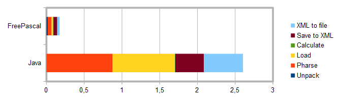 А вот сравнение производительности Java и FPC на задаче сохранения результатов в XML-файл: