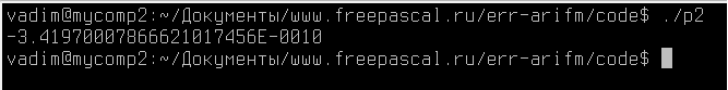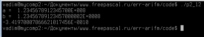 program primer2; Var a : Double; b : Extended; c : Extended; Begin a := 123456789.123457; b := 123456789.123457; c := a - b; WriteLn(c); End.