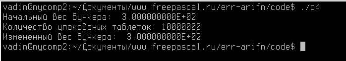 Конечно на счёт коррупции я немного погорячился, но то что в нашей программе присутствует чёрная дыра (или запрещённый когда-то французской академией наук вечный двигатель) - несомненный факт. Не буду вас интриговать, я не Агата Кристи, а вы не мисс Марпл. Проблема очень похожа на ту, что была в примере 1. Вот только представлена она немного по другому. Здесь общий вес таблеток (300 кг) и вес одной таблетки (10 мг) сильно далеки друг от друга. Для выявления проблемы их можно просуммировать: