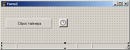 Для проверки работы нашего нового компонента установим пакет и создадим простейшую программу тестирования. В главной форме разместим нашу модернизированную строку состояния, в которой определим 4 панели, кнопку и таймер. Примерно так, как показано на рисунке: