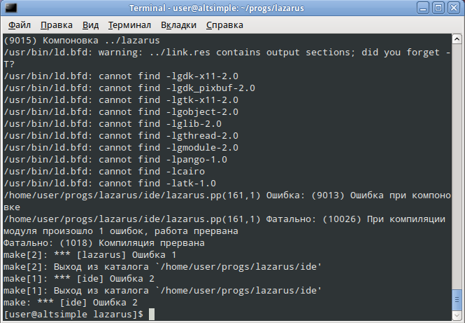 Более-менее полный набор компонентов в Lazarus даст нам запуск "make bigide". Но вот если не поработать предварительно с некоторыми библиотеками, в конце сборки мы обязательно увидим сообщения об ошибках, как на рис. 2.