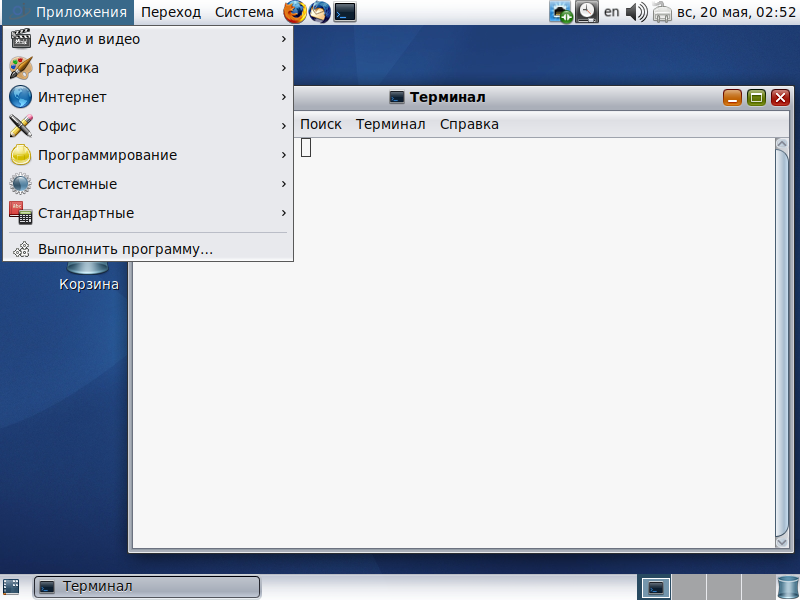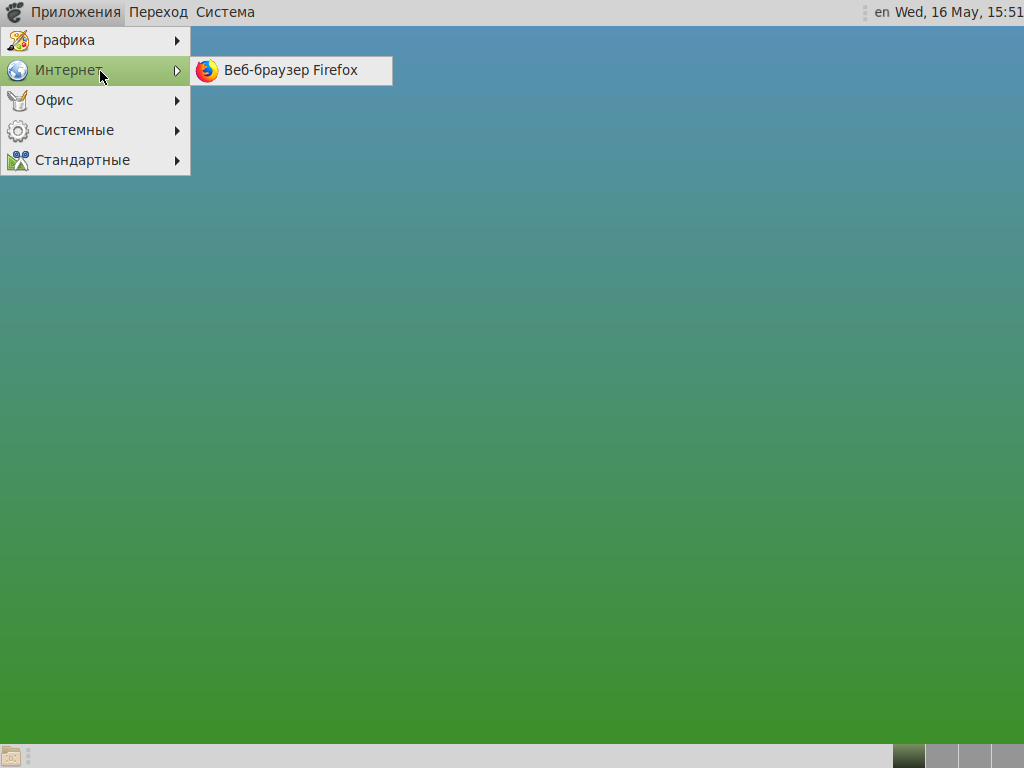 Теперь перезаходим под обычным пользователем и запускаем "startx". Вот что в результате получается: