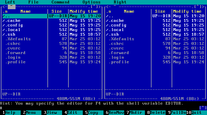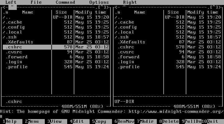 Запускаем "mc" и приходим в ужас от его внешнего вида: