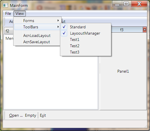 приложение с анхордокингом и тулбарами. Формы легко добавляются\убираются путем регистрации в приложении, тулбары и менюшки описаны в внешних xml файлах. Раскладка форм и тулбаров сохраняется\восстанавливается.