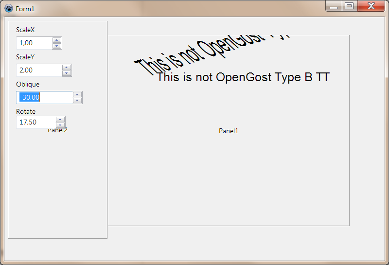 http://i.stack.imgur.com/crGOe.pngДобавлено спустя 21 час 10 минут 53 секунды:Вроде нашелся способ меня устраивающий - позволяющий и косить, и наклонять и масштабировать без пересоздания шрифта: