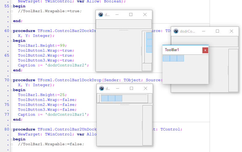 а... вот оно как... я просто думал, что там тулбар, а не кнопки на форме. Но если заменить: кнопки на форме, на обычный тулбар, то всё работает. Но при вертикальном положении, ей нужно принудительно указывать высоту.