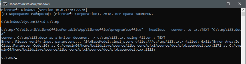 "C:\Program Files\LibreOffice\program\soffice" --headless --convert-to txt:Text "D:\test\ПротоколТест.docx"