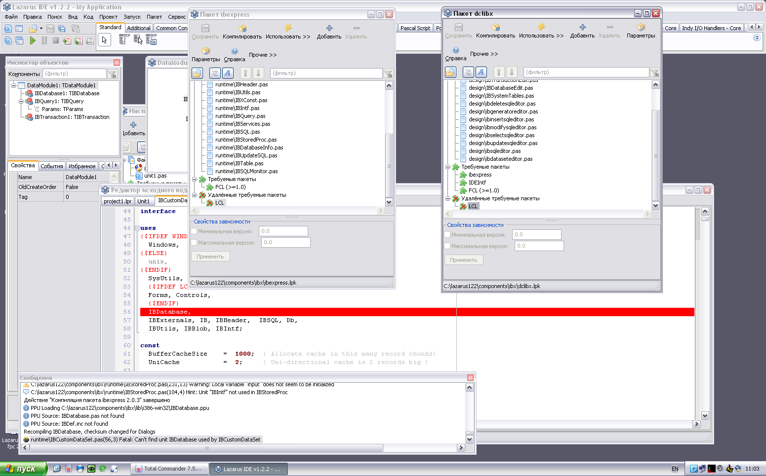 Тут дело вот в чем. Сами редакторы используют компоненты ibexpress и когда мы разделяем места хранения скомпилированных модулей, у нас получается, что ..ibexpress/lib/ и ..dclibx/lib/ содержат одинаковые скомпилированные модули, о чем при установке dclibx выдается сообщение. Это не страшно, просто раздразжает, когда часто приходится пересобирать Lazarus. Тут наверно надо с путями чего-то поправить, чтобы при компиляции dclibx он не компилировал модули ibxpress заново, а брал готовые из из ibexpress/lib. Я сам как на Lazarus пересел, ещё и года нет, поэтому с такими нюансами ещё толком не разобрался...