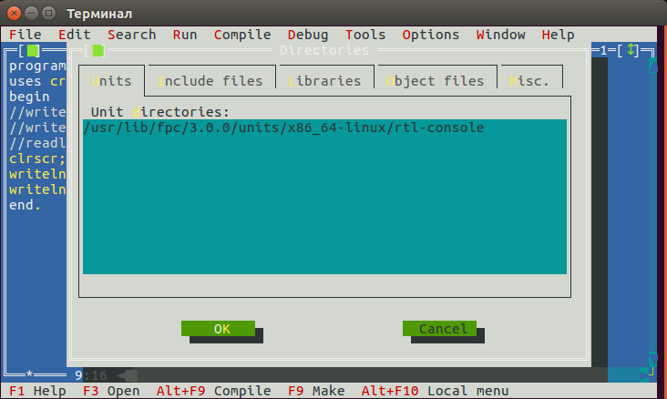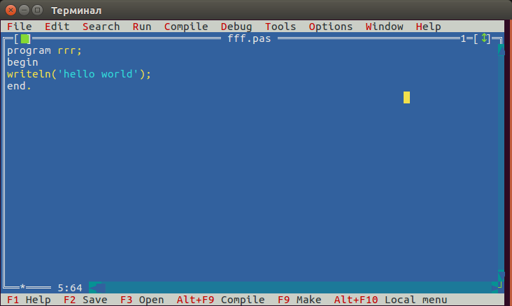 free pascal установил так sudo apt-get install fp-ide fp-utils fp-docs